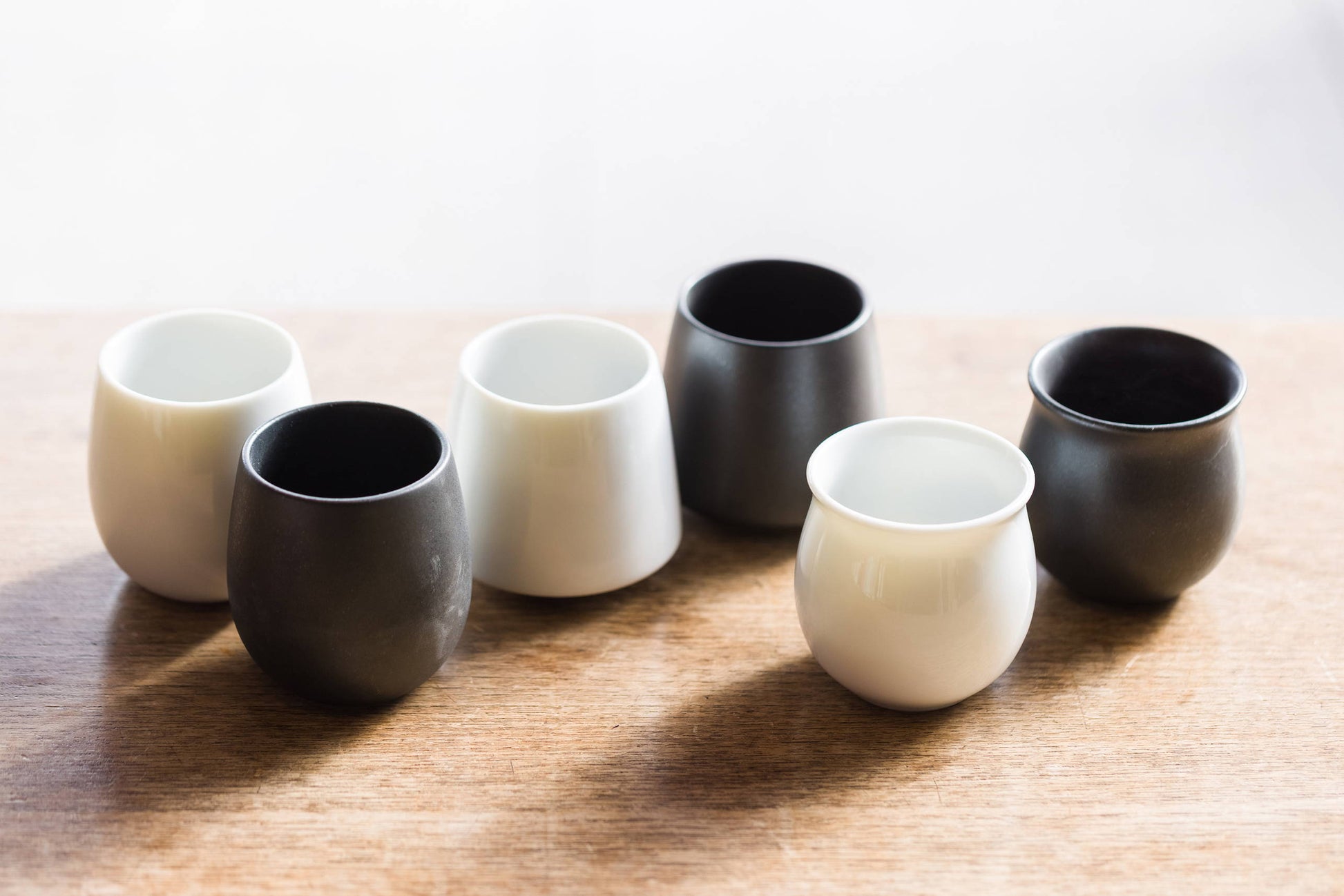 White has a glossy glaze that makes the coffee color easy to recognize and the cup feels smooth in the mouth. The matte black has a "blind effect" that dares to obscure the color of the coffee, allowing you to enjoy and taste the aroma and flavor of the coffee more deeply regardless of the liquid color.
